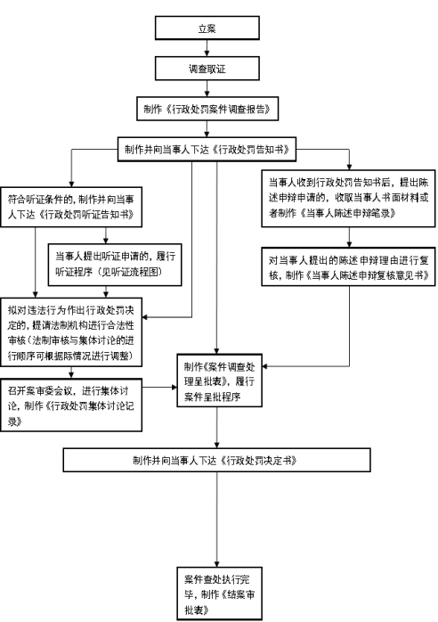 立案——调查取证——必要时进行听证——作出处罚决定——执行。